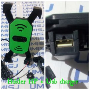 Holder ini sangat simple dan dual fungsi, tidak hanya bisa dipakai untuk menaroh HP di holdernya, tapi bisa juga untuk charger karena sudah dilengkapi dengan Slot USB charger, dudukan nya kuat, tapi ini model holder yang bukan waterproofe yaa, cukup pasang hp dengan cara dijapit aja pegangan kana kiri nya, mudah bukan. tampilan model nya keren dan modish, cocok buat yang suka touring maupun harian buat naroh hp nya lebih aman dan ngga ribet ataupun takut jatoh. free karet tambahan yaa buat braket japit nya..