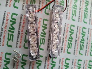 Strobo led luxeon dengan nyala terang kecil-kecil tapi pedes, dengan dua mode kedipan, kedip bareng dan bergantian