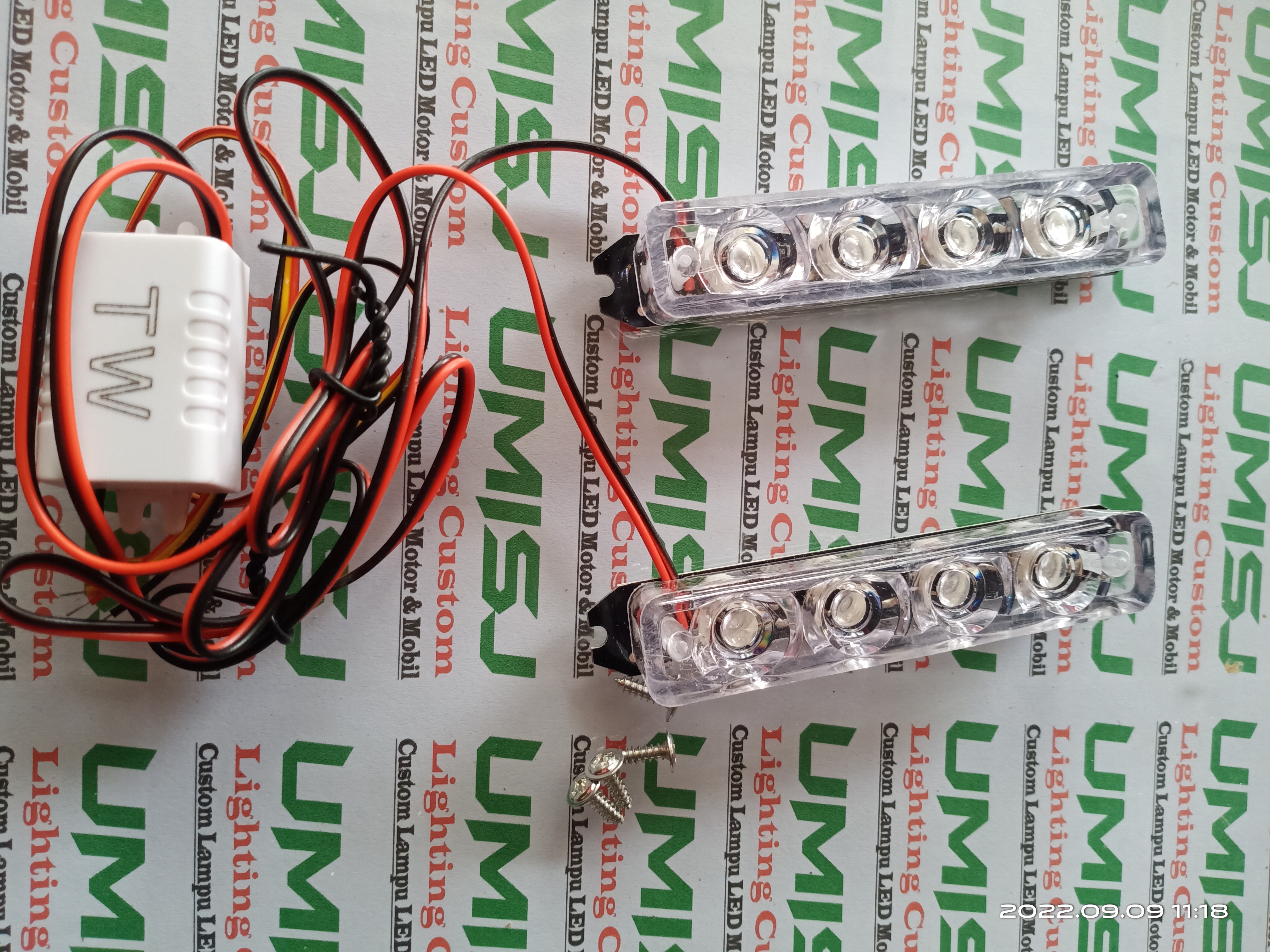 Strobo led luxeon dengan nyala terang kecil-kecil tapi pedes, dengan dua mode kedipan, kedip bareng dan bergantian